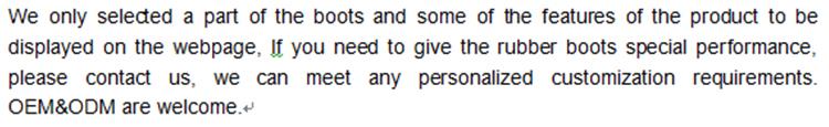 Cov khau boots 100% waterproof, rwb thaiv tsev thiab sov so, nrog steel-ntiv taw cap tiv thaiv. Lub luag haujlwm hnyav roj hmab nrog lub siab ntom ntom, neoprene lined sab hauv rau rwb thaiv tsev thiab sov so.